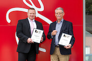 Company founder Dr. h. c. Peter Jentschura and Marketing Manager Guyves Sarkhosh (left) are delighted about the “German Brand Award 2020”, where the P. Jentschura brand has now received two awards. Photos: David Hölker/Jentschura International GmbH.