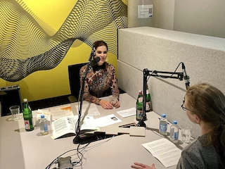 Sprachen im Podcast über Nachhaltigkeit und soziale Verantwortung: Barbara Jentschura (links im Bild) und Dr. Christina Willerding (WFM). Fotos: Wirtschaftsförderung Münster