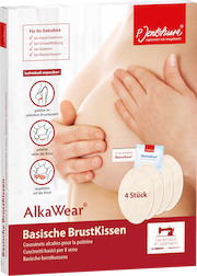 Die basischen Brustkissen aus hochwertigem, hypoallergenem Baumwollmull nach Oeko-Tex-Standard helfen effektiv bei Beschwerden und Hautproblemen im Brustbereich. Denn ständige Reibung und starkes Schwitzen in der Hautfalte unter der Brust können die empfindliche Hautpartie reizen und auffällige Rötungen und Hautirritationen hervorrufen. Die in Jentschuras hauseigener Manufaktur gefertigten Kissen werden einfach im BH getragen und sind daher hervorragend alltagstauglich. Die Kissen kann man trocken unter der Brust tragen, mit einer Lauge leicht anfeuchten oder mit einigen Sprühstößen Sauerstoff-Spray versehen.