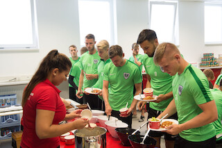 Het team leek duidelijk overtuigd van de producten. Voetbalprof Simon Scherder is Jentschura 'peetvader' en daarom al helemaal vertrouwd met de filosofie van P. Jentschura. Als absoluut lievelingsproduct noemt de voetbalprof, die kort gelegen werd benoemd tot captain van het eerste team, de gierst-boekweitpap MorgenStund'. "Het is 's morgens de ideale voeding vóór de training. Met fruit en noten is het namelijk snel bereid, het belast niet en geeft veel energie", aldus Scherder.