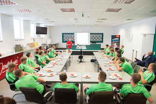 Om het eerste team van SC Preußen in de voorbereiding op het nieuwe seizoen te ondersteunen, is men nu begonnen om de spelers in te dekken met de producten van P. Jentschura. Hier kregen de spelers na de ochtendtraining eerst een snack aangeboden uit TischleinDeckDich en MorgenStund' om weer energie bij te kunnen tanken. Terwijl zowel de gearriveerde als de nieuwe spelers zich konden overtuigen van de smaak van de producten, gaf Mirko Adorf een inleiding over de werking daarvan en de centrale betekenis van het zuur-base-evenwicht voor een duurzame prestatieverhoging. Het doel is om de spelers van de nodige kennis te voorzien en bij hen het bewustzijn te creëren voor gezondheid en preventie. "Als ambitieuze speler kun je niet vroeg genoeg met dit thema beginnen. In deze harde concurrentiestrijd kunnen vermeende kleinigheden van doorslaggevend belang zijn voor succes of mislukking", verklaart Adorf.