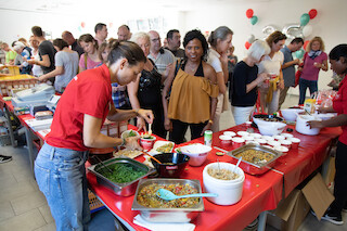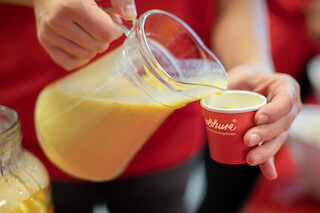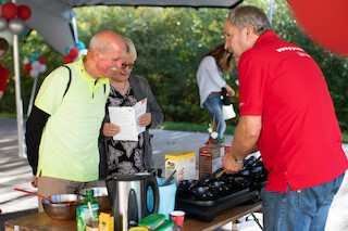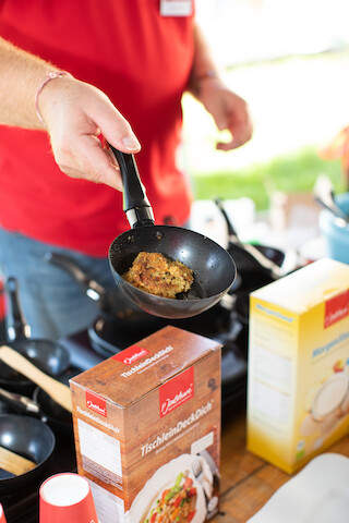 En deze persoonlijke betrokkenheid was gedurende de hele tijd te zien en te voelen. Dedag stond in het teken van een persoonlijke ontmoeting met de senior manager en deandere voedings- en gezondheidsadviseurs. Naast lezingen waren er regelmatigrondleidingen door de administratie en productie, live-cookings, hands-on activiteiten zoalsschieten op een doelwand, kinderanimatie en natuurlijk basische Jentschura-lekkernijen,die alle bezoekers zichtbaar goed hebben gesmaakt.